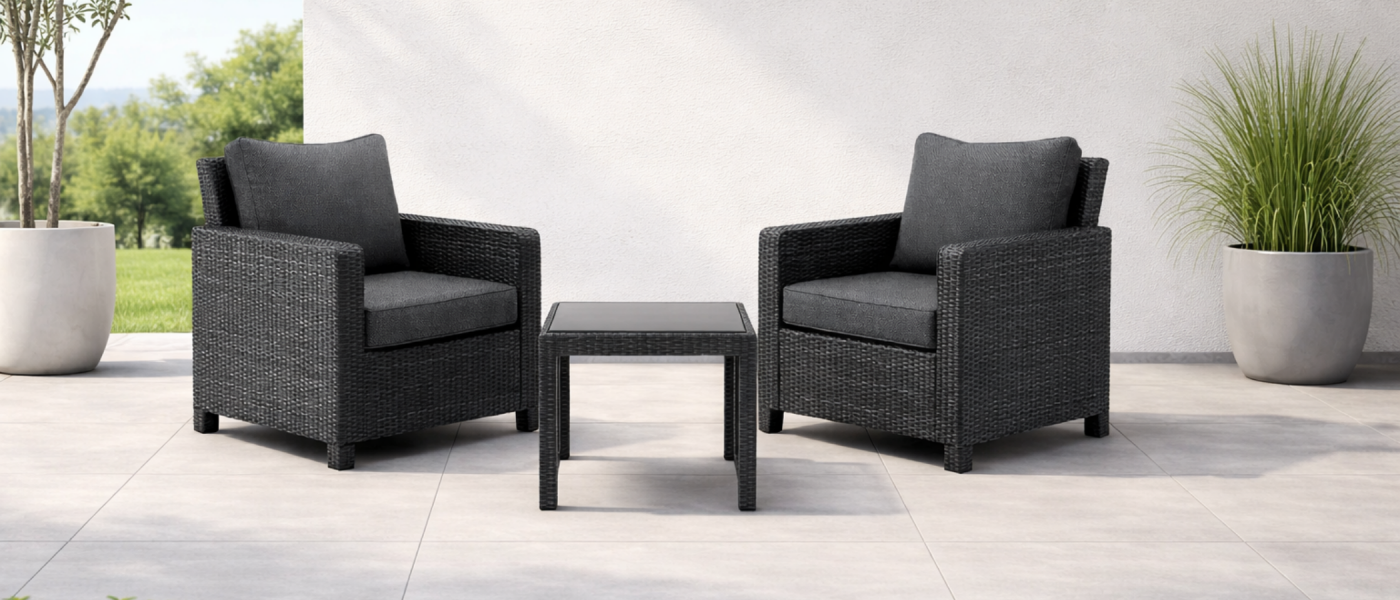 Balkonset Polypropylen Rattan Anthrazit mit 2 Sesseln und Glastisch